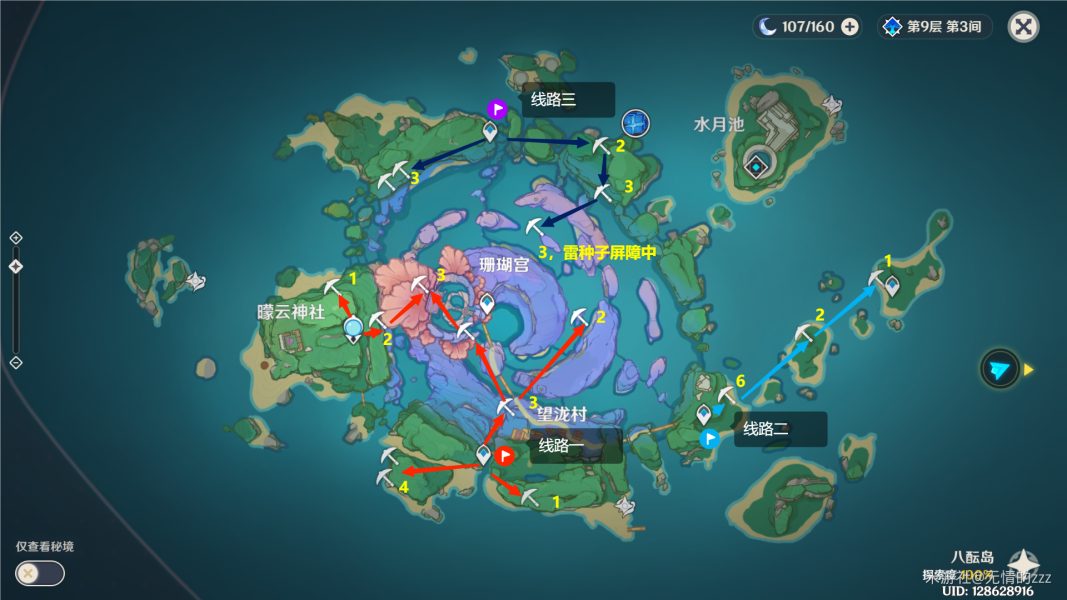 黄色数字为该点位紫晶块的数量,便于大家自己选择路线