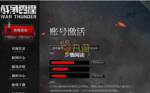 领取到战争雷霆激活码,可以到激活页面填写激活码等信息激活帐号