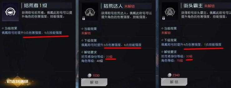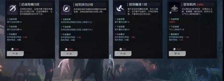 拾荒者近战专精:提升近战伤害。拾荒技巧:每日获得杂物宝箱,可开出硬币和强化材料。致命瞄准:提升重伤伤害。坚实肌肉:气力上限提升