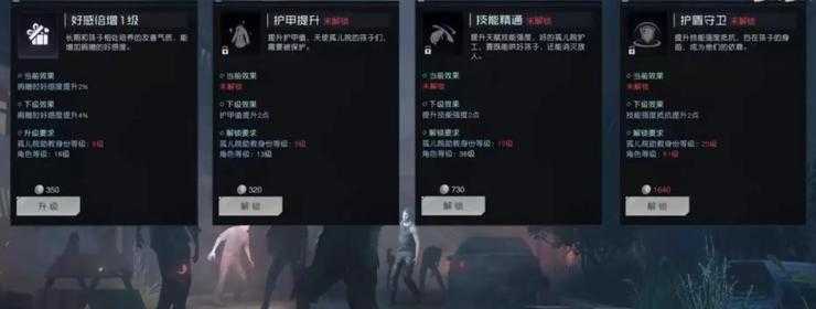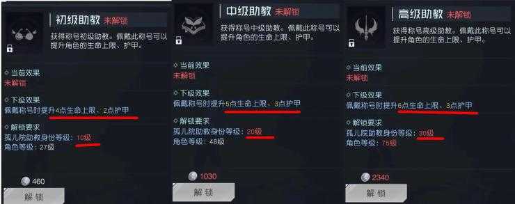 孤儿院助教好感倍增:捐赠时好感度提升。护甲提升:护甲值提升。技能精通:提升技能强度。护盾守卫:技能强度抵抗提升