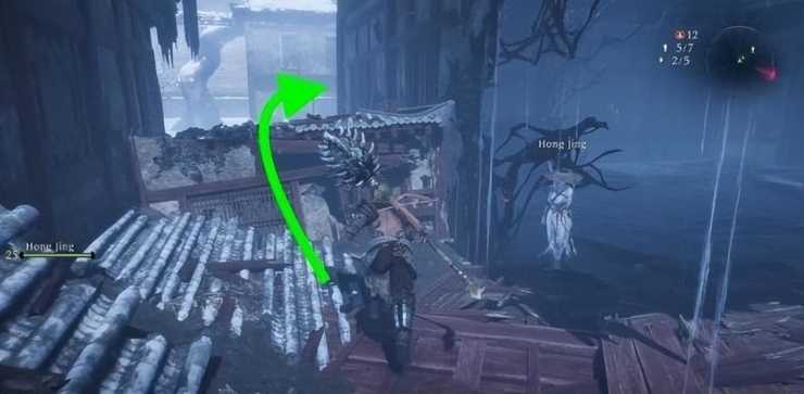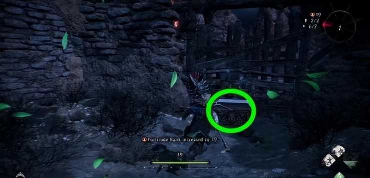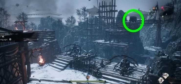3、解决掉后,爬上伥鬼后面长梯,然后再向右走,路过两名士兵就能找到。