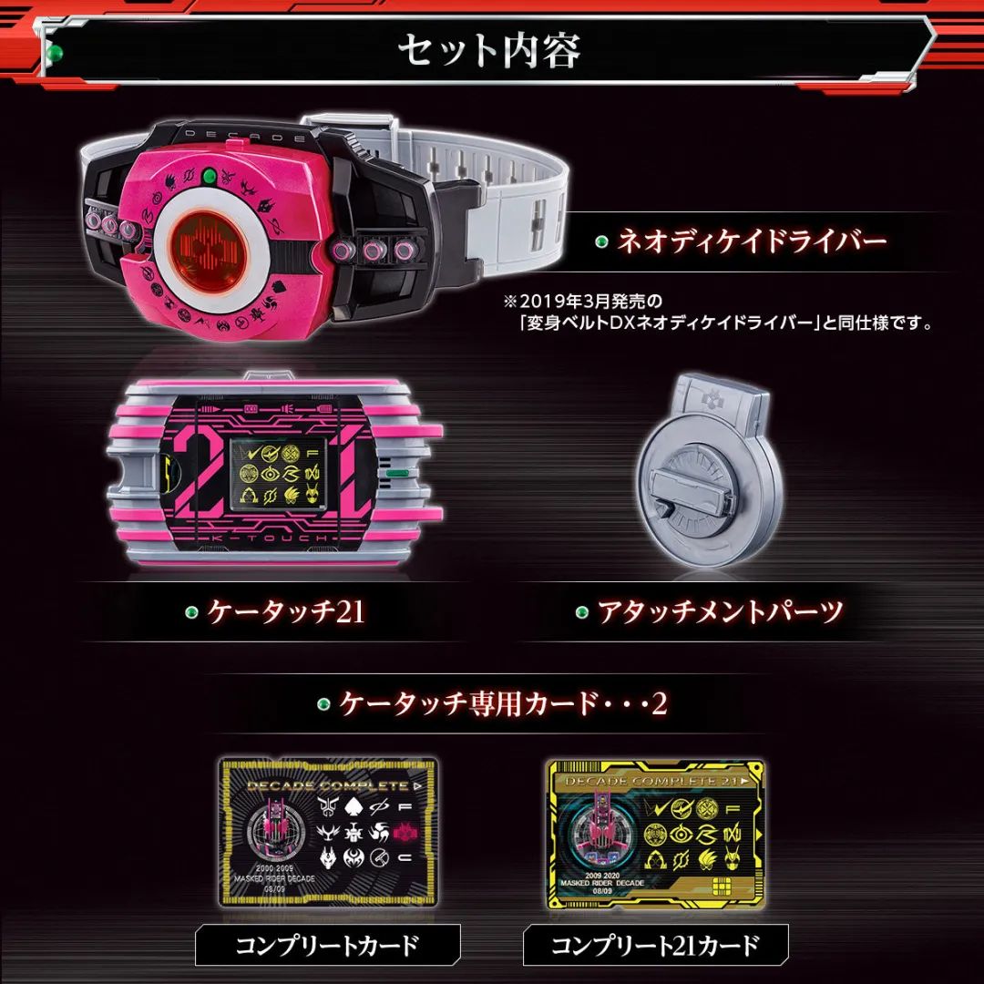 以上介绍的DX假面骑士decade完全形态21套装,将于21年的6月发售,参考售价为14850日元(含税)。
