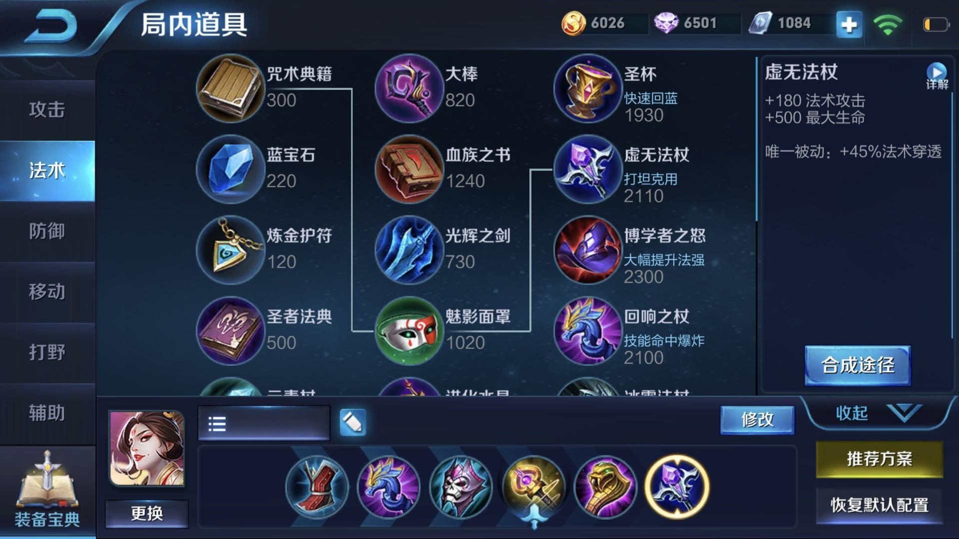 武则天是一名非常出色的团控英雄,无论先手、后手、游走、对线、保命都堪称一流。武则天的常规出装一般为冷静之靴、回响之杖、痛苦面具、博学者之怒、辉月、虚无法杖。辉月后