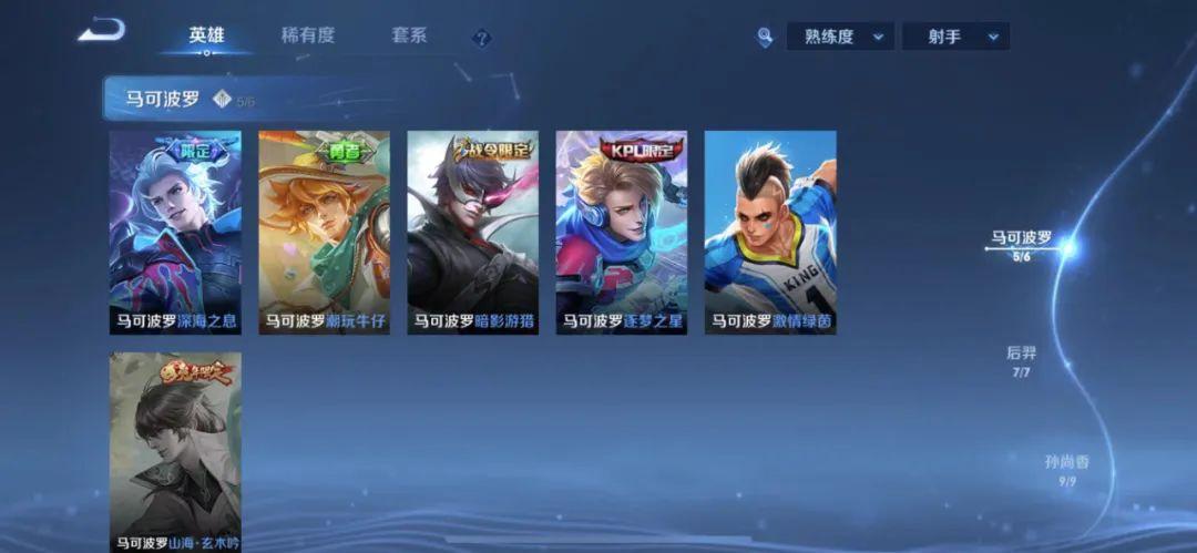 马可波罗是我的本名英雄,使用他的场次超过了30%,同时,马可波罗的全皮肤我都有,每一款都使用过许多局。