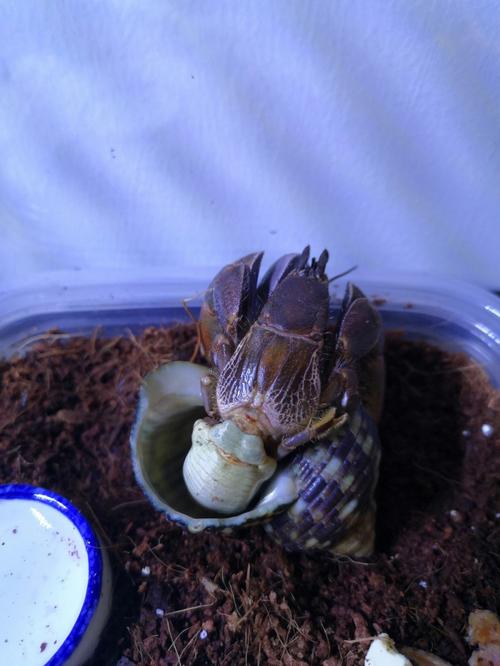 寄居蟹一般白天不动是正常的,晚上会比较活跃,但是我们睡觉了,看不到。寄居蟹吃的也不多,可能它吃了我们也没看到,以为没吃。