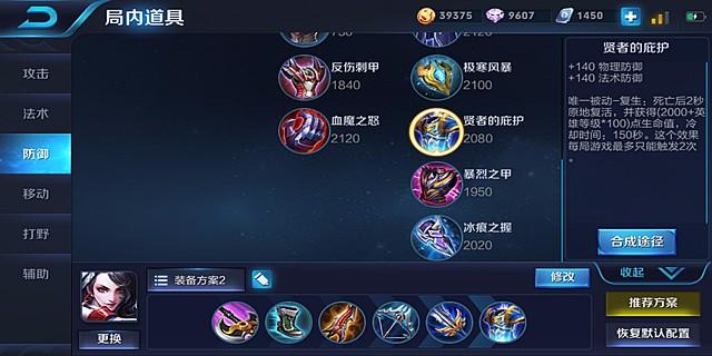 最后一件装备选择贤者的庇护。后期团战节奏比较快,贤者的庇护能够提升孙尚香在团战中的容错率,避免在团战中一下子因为走位失误而阵亡。在贤者的庇护进入冷却时可以换成名刀司命。