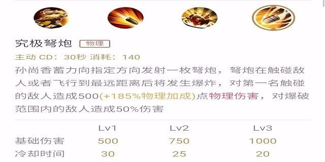 数值分析:该技能是孙尚香的主要伤害技能,建议主加。