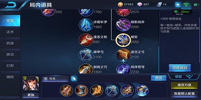 第四件装备选择破甲弓。现在的版本战士和坦克比较强势,他们的护甲值都比较高,所以需要破甲弓提供的高额的破甲能力加成提升孙尚香的伤害。