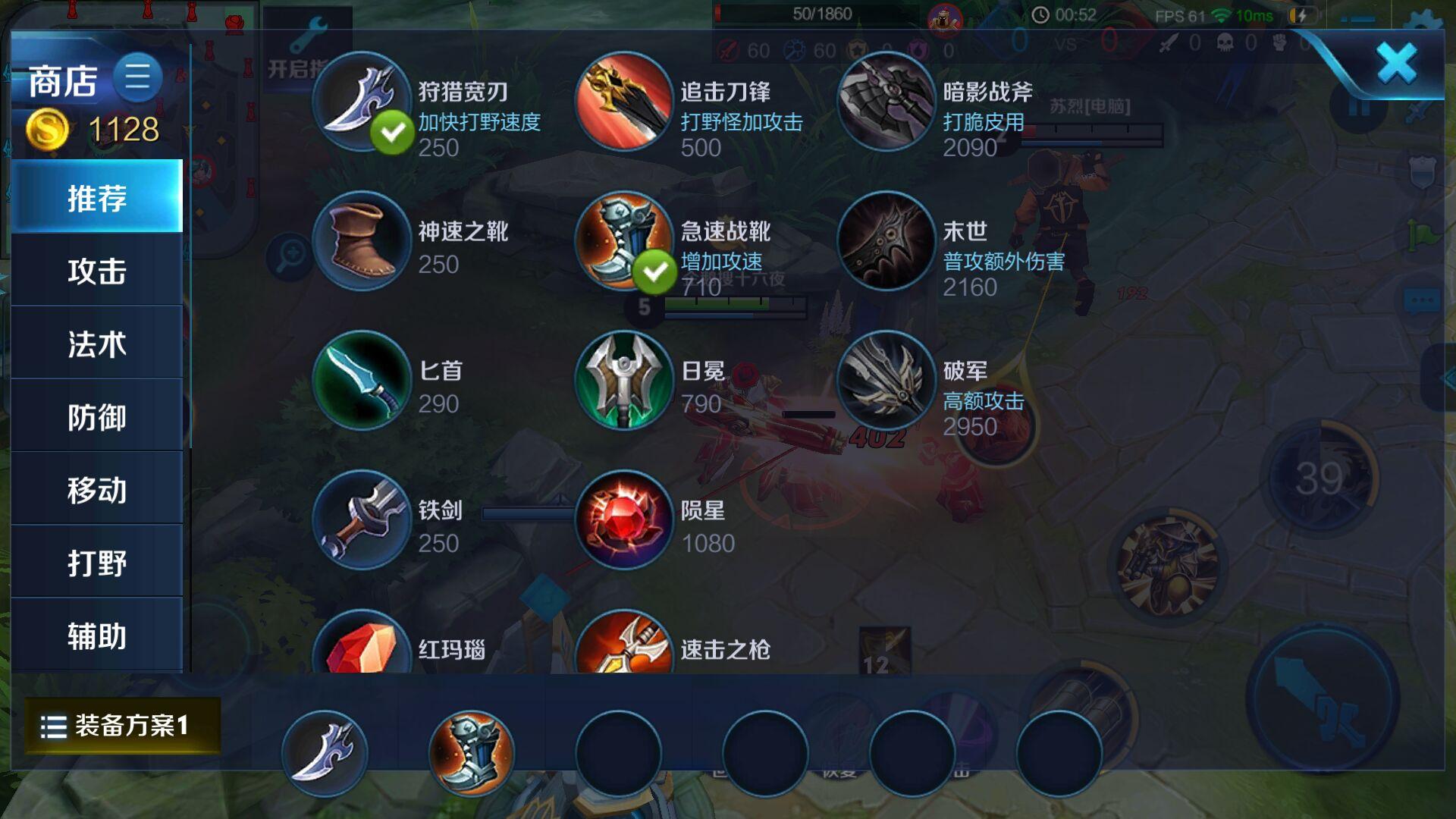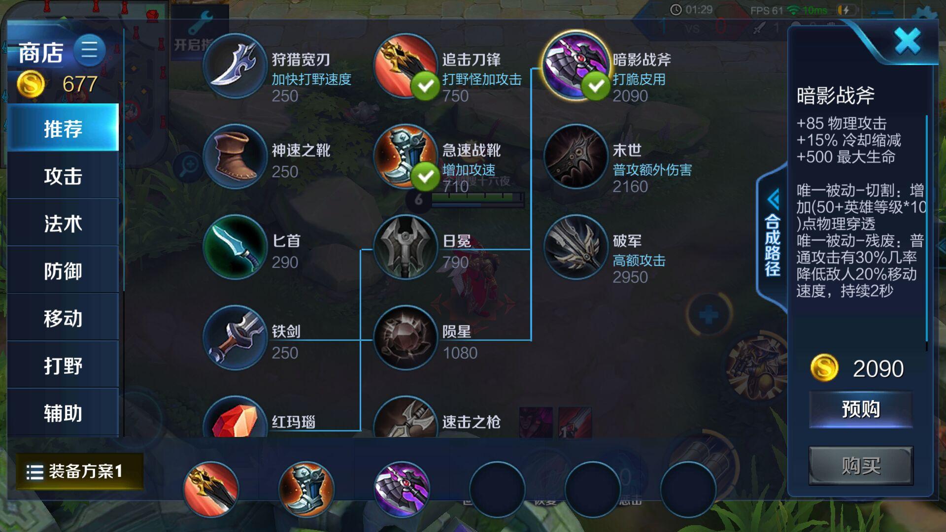 然后出小打野刀 攻速鞋子加快游戏节奏 然后出红色打野刀和 暗影战斧