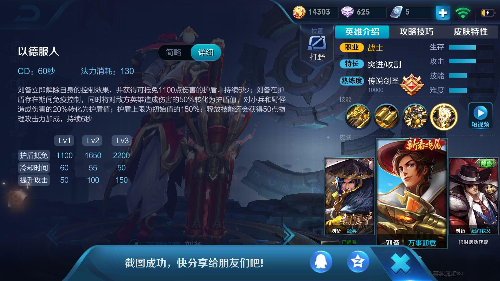 基本上每个赛季用刘备上51星玩助手的都知道其实刘备这个版本不强势特别野怪改了 下面技能介绍把被动也就是打人加双抗越打越肉 只有中间2发可以暴击也就是说 出了暴击伤害也