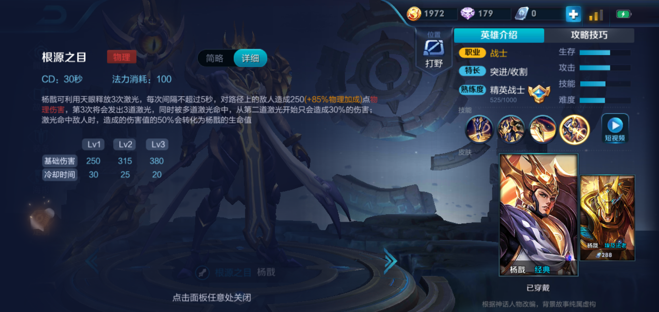 总结先说一下杨戬的技能:杨戬的一技能是他突进,对后排威胁最大的一个技能。一技能可以有两段。可以说一技能的命中是关乎杨戬能不能玩好的关键。