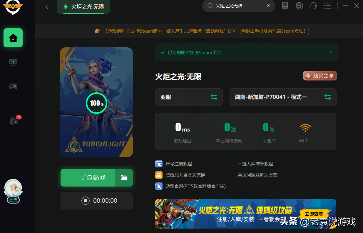 目前还是不建议大家直连来游玩火炬之光无限,毕竟这是一款海外的游戏。更建议你们使用奇游加速工具对该款游戏完成加速,这样才能有效的解决丢包/服务器崩溃等现象。在加速页点击启动游戏还是一键入库steam的效果。