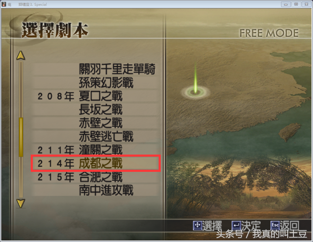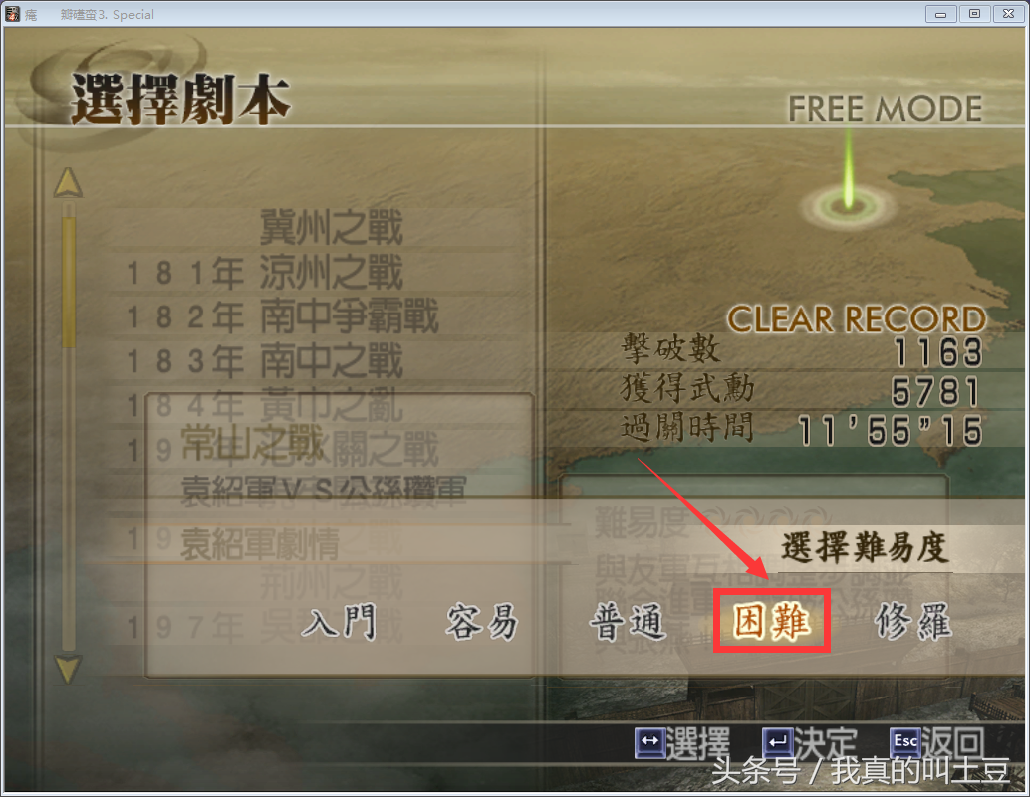 选择成都之战,难度选择困难难度。