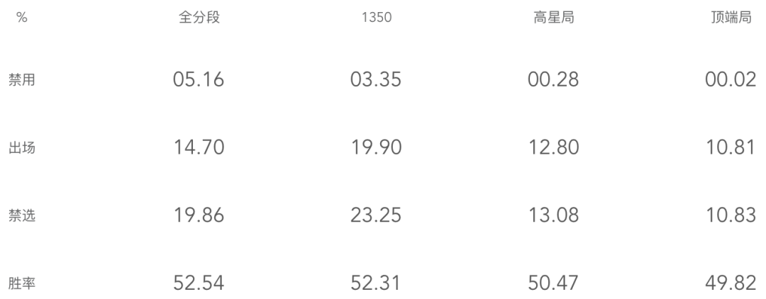 现在墨子辅助算是比较高的英雄了,其在最近的对局数据中全分段、1350+、高星局胜率都超过了50%,而顶端局到了49.82%,而墨子在1350+对局中禁选率和出场率是最高的,那么为什么如此