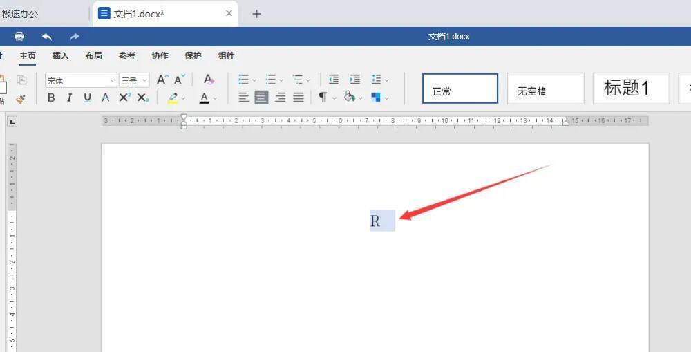 1、首先,打开Word文档,输入大写字母R并选中;