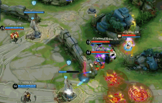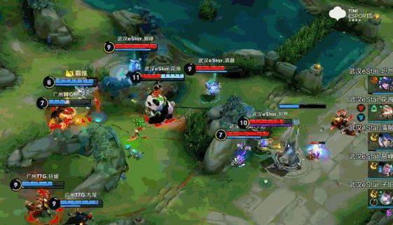比如这波团战,eStar马超一人处理中路兵线,另外四人抱团进攻敌方上路二塔。