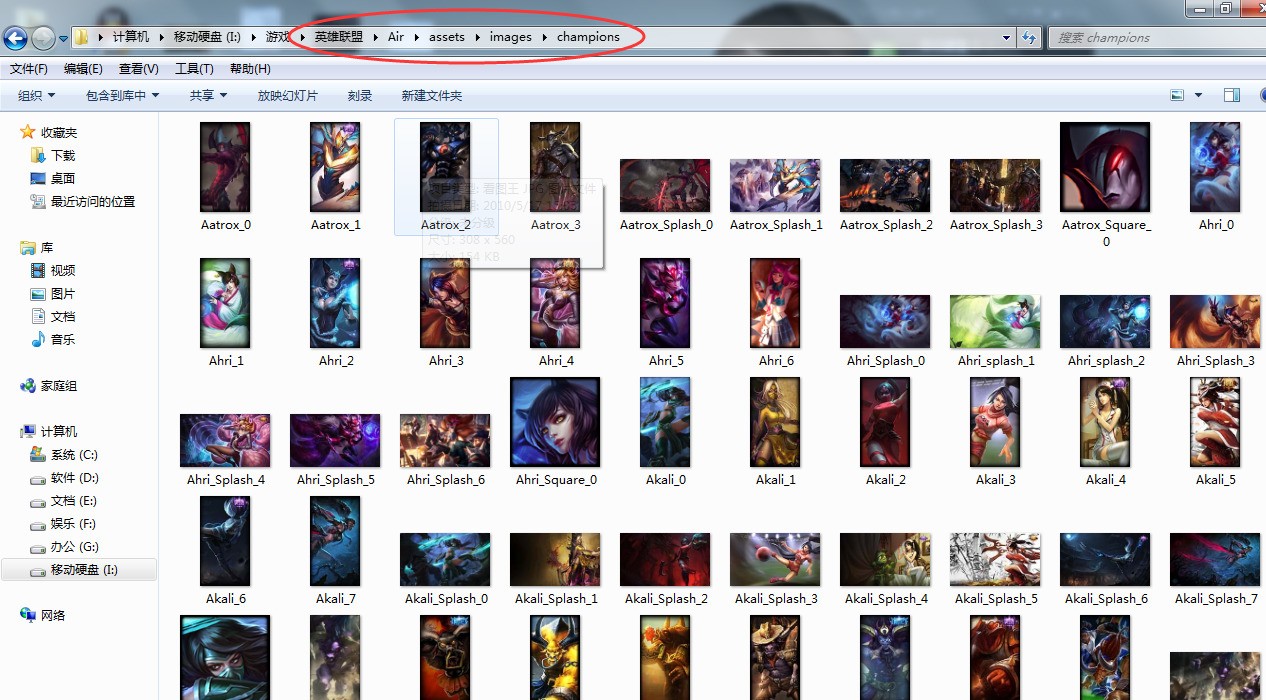 1、原画位于:英雄联盟\Air\assets\images\champions这个文件夹内,如下图