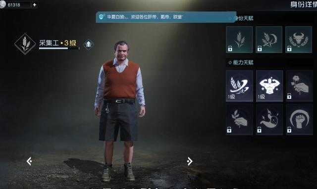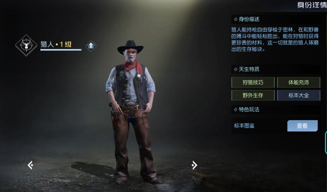 第四个猎人,就是狩猎的。天赋就是拿肉,打了猎物之后,可以从动物身上获取。这个狩猎的暴击率重伤抵抗提升,类似于明日之后的武士。那个伤害狩猎速度就是捡肉的速度,挨饿就是挨饿,都是一样的。