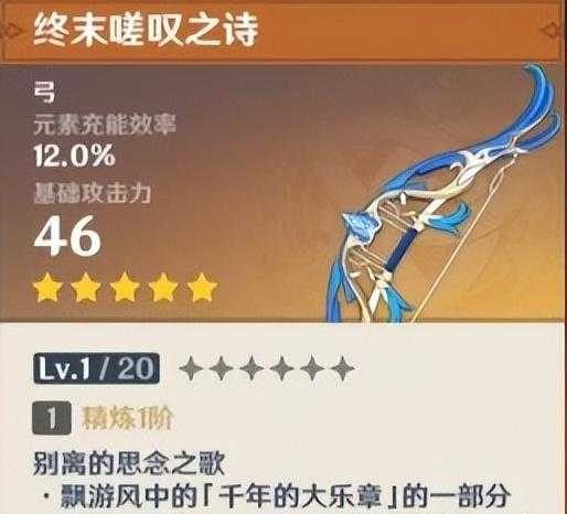 毕业武器推荐:终末嗟叹之诗(提高队伍整体伤害,同时提高自身的元素反应伤害以及充能效率)