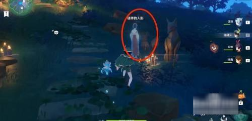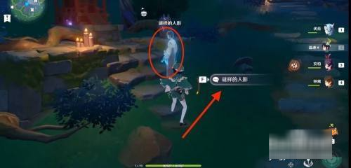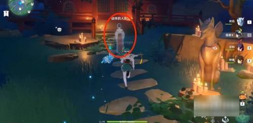 6、第六个谜样的人影位置比较隐蔽,从神龛右转,在树丛下面找到她对话。