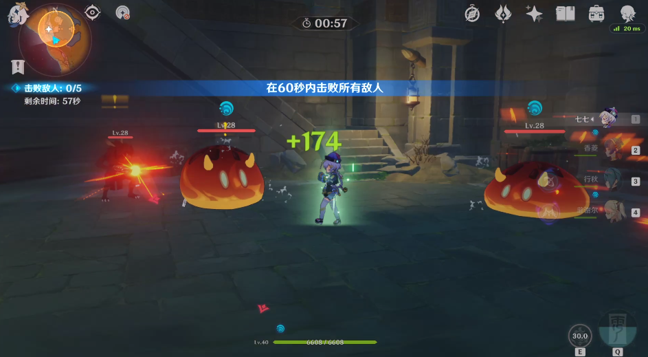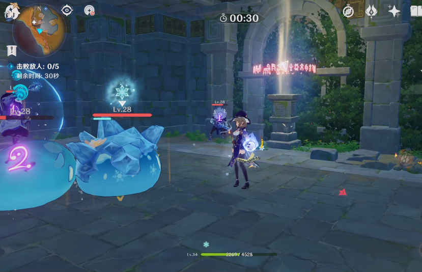 第二层也好过,第二层是在六十秒内打败火属性的丘丘人和史莱姆,这一层也很好过只要带着冰属性、水属性和雷属性的角色就可以过了。