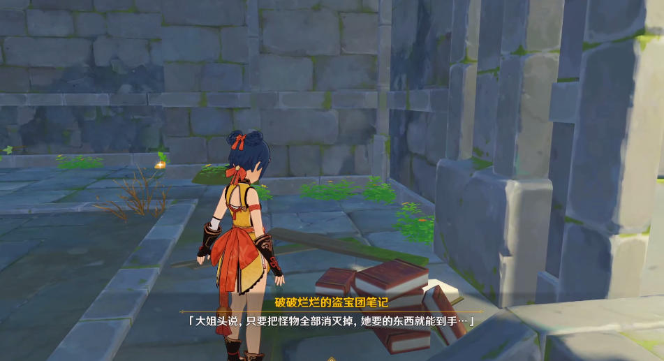 第一部分的三座遗迹分别是石碑后面的一座遗迹和左右各一座遗迹,这几座的遗迹各有不同的挑战,挑战的难度也各有不同。在每一座遗迹的门口都有着一堆破破烂烂的盗宝团笔记,里面记录着每座遗迹的挑战内容。