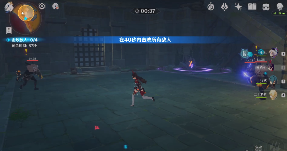 这一座的遗迹挑战小编觉得是最难的,这遗迹的挑战也是有三层,前两层的挑战都是比较简单的。这一遗迹的挑战任务就是在指定时间内打败怪物,也就是史莱姆,丘丘人与深渊法师。第一层的怪物就是岩属性和雷属性的丘丘人,这个还是比较好过的。只要在四十秒内打败就可以了。