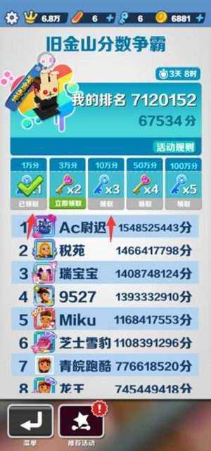 1、最难的就是争霸赛了,不过奖励的钥匙也多。