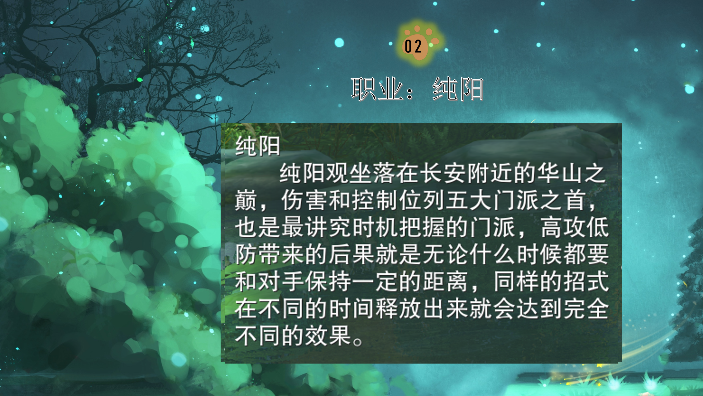 七秀门派一向只招收女弟子,所以是很受女玩家喜爱的,虽然治疗能力不如万花,但是她注重的点是在于瞬间爆发的能力,以及能够给队伍提供很好的增益效果,可以说是队伍中不可缺少的职业之一了,但是如果你是喜欢PVP的,不是特别建议你选择这个职业,天生缺乏战斗力的她,显得十分弱势。