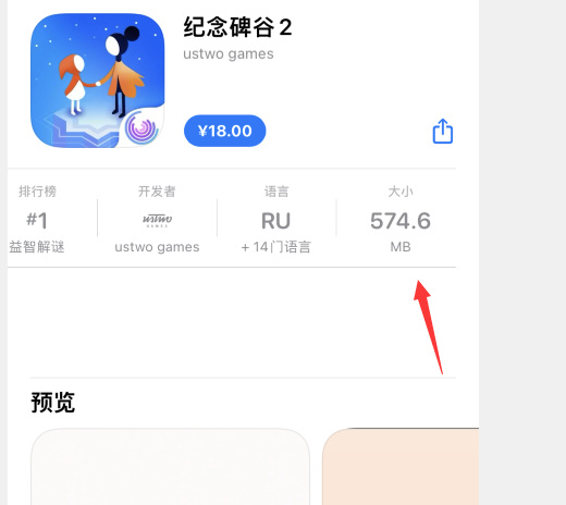 1、纪念碑谷2游戏的价格为18元2、纪念碑谷2游戏的内存为574.6MB