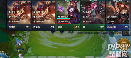 金铲铲之战的核心玩法是购买棋子,让棋子在棋盘上和对手作战,下图中蓝色方框代表这个棋子出身,红色代表棋子的职业,金色方框代表购买棋子的金币,需要金币的数量同时代表棋子的稀有度,稀有度为1-5。