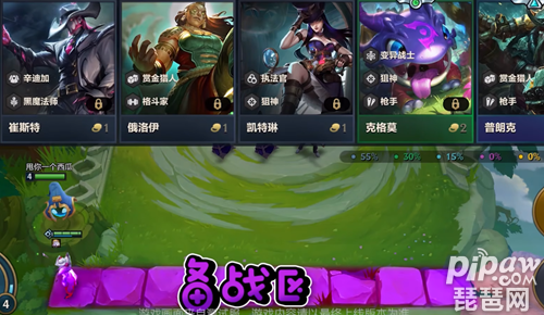 购买的棋子会来到棋盘下方的备战区,备战区最多能存储9个棋子。