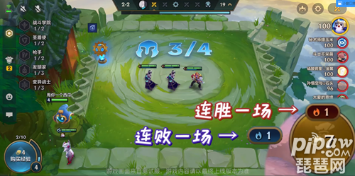 当我们进入游戏就可以看到右下角的金色圆圈,这代表着金币,金币只有两个用途,购买棋子和升级等级,金币上方的数字是我们的连胜或者连败数量。