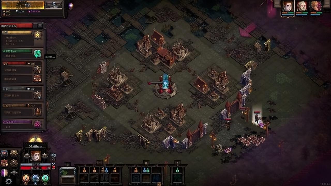所有的这些建筑都可以进行多条路线的升级,很显然以多名工人和金矿石矿的开局能带来更好的长期受益,但是你需要考虑把资源转化为战斗力的速度是否能和每一轮次怪物强度的提升可以匹配。在运营建造的UI界面,可以看到右上是金币、石材和工人的数量。左侧是信息提示栏,会提示玩家英雄角色的升级、新的黑暗与光明解锁内容、可用的金币&石材&工人、可用的建造选项、各类工坊中的产出品等等。