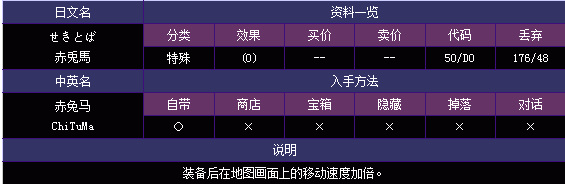 3、赤兔马,装备后在地图上的移动速度加倍。