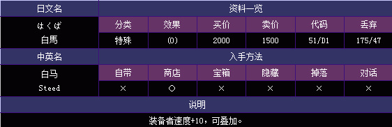 1、孟德新书,装备之智力加20,可叠加。2、乱码画屏,俗称粉狮子。无特殊属性,就是好看。3、赤兔马,装备后在地图上的移动速度加倍。4、白马,装备后移动速度加10。5、攻速鞋,装备者速