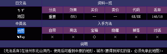 31、地图,[无法丢弃]在徐州东北山洞内,使用后可看到中原的地形、城市(要得到郑玄的信,必须先拿此地图)。