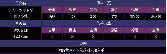 15、进攻令牌,同野营帐,正常游戏无法入手。