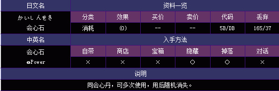 14、会心石,同会心丹,可多次使用,用后随机消失。
