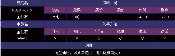 13、金仙石,同金仙丹,可多次使用,用后随机消失。