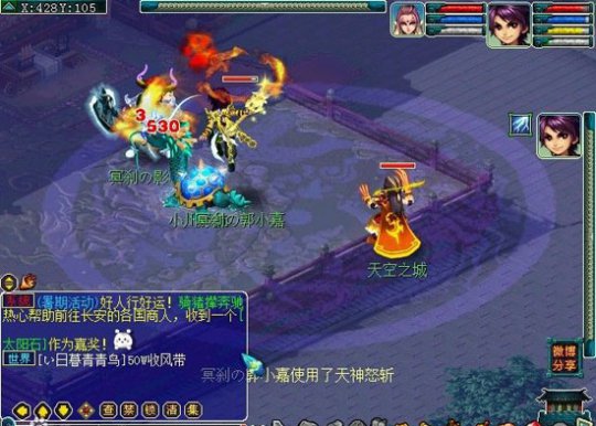 3. 断岳式:消耗一点战意 连续攻击敌人2次。看起来和破血的效果一样,实际上断岳式的攻击效果是递减的,而破血有一定的伤害加成,但因为其只消耗一点战意,在PK中还是广泛运用的,尤其是单点清宝宝的时候效果比较明显。
