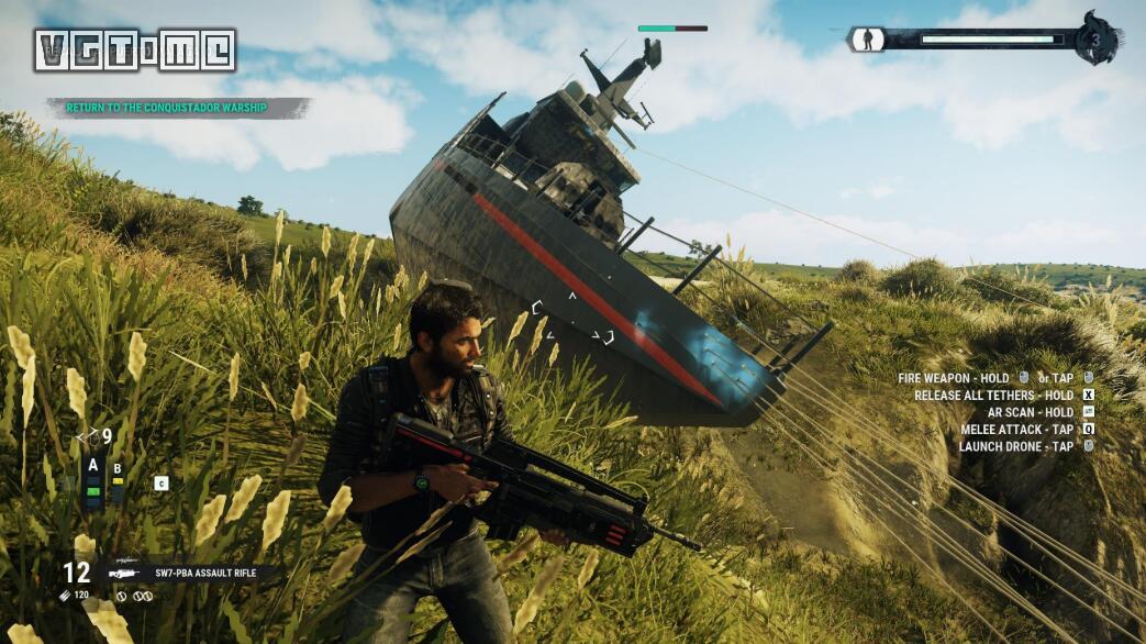三种模式的钩爪是可以混合使用的,你完全可以用气球把汽车船只拉到空中以后再通过助推器来使它飞行。热爱虐待路人的玩家们到现在都能找出《正当防卫3》的钩爪新玩法,我丝毫不怀疑他们能在本作中展现出我根本无法想到的创意。