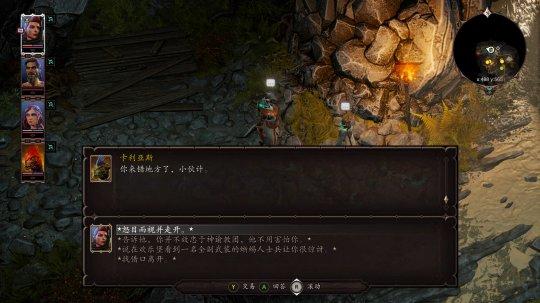 这些繁多的设定并非只用于丰满形象,更多的,它们将会在接下来的冒险里为各位玩家带来不同的体验。在久远的30年前,RPG游戏的表现力并未现今天这般华丽,所以大量的文字和由此而来的剧情选项是塑造出一款RPG出色的基础,《神界:原罪2》继承了CRPG的这点设计,但加入了些更“先进”的技术,比如角色都拥有专属的语音,在进入剧情后,他们会深情并茂的朗读出故事发展(游戏还有旁白),让大量文字显得不那么累人。而玩家在不同的标签设定和属性基数的加持下,就能根据剧情做出自己想要的选择。比如你遇到了一位蛮横无理的蜥蜴商人,口气令人嫌恶,你对他看不顺眼,大可直接让他人头落地,不过,若是你选择根据自己“士兵”的设定和它沟通,这时,这个无理的蜥蜴人会忽然对你肃然起敬,因为它也是位同样下场潦倒的士兵,它很高兴,还愿意将“新手村”最好的剑便宜卖给你,帮你渡过难关。两种选择,完全不同的走向结局。