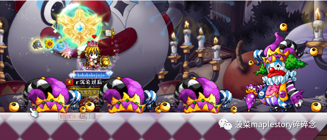 进阶小丑还有一个机制,紫色帽子小丑、红色帽子小丑一段时间内你不攻击它,仇恨值也会消退(常见于换帽子的情况下,要与小丑保持比较远的距离),不会追踪你,给你上帽子。打出分裂的情况下,小丑只会剩下蓝色帽子小丑与红色帽子小丑,不再会出现紫色帽子小丑。