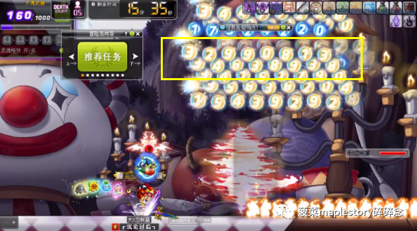 玩家需要注意,一旦角色头顶的帽子,和小丑头顶帽子颜色一致的时候,不能攻击进阶小丑,否则会使得小丑恢复血量(打出来的伤害为蓝色,说明是给BOSS回血了):