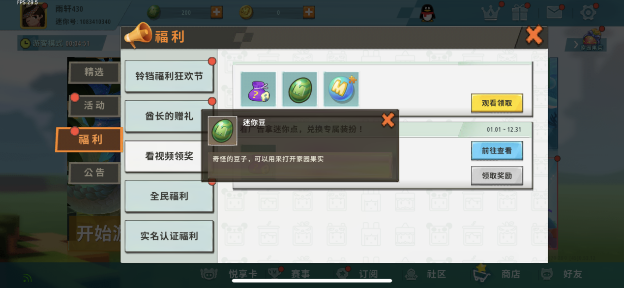 这应该是迷你豆来源最常见的途径了,在游戏中玩家只需要看视频,就可以获得不错的奖励,迷你豆就是其中之一。而且每一次看视频,获得迷你豆的数额也不相同,大家也可以碰碰运气,看看自己是不是欧皇。
