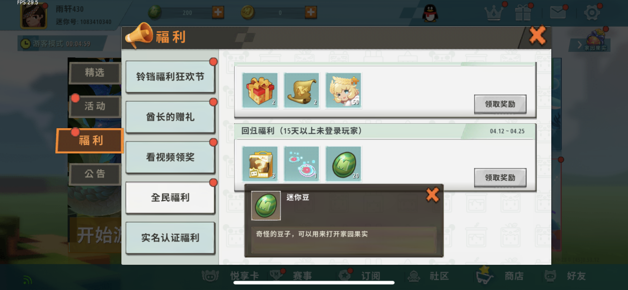 如果你是老玩家(15天没有登游戏),回归游戏之后,就可以拿到一定数额的迷你豆。不仅如此你在家园系统中收获果实,也可以获得迷你豆。对于白嫖玩家而言,这种方式毫无疑问是最香的。各位有什么获得迷你豆的方式呢,不妨评论区留言讨论。