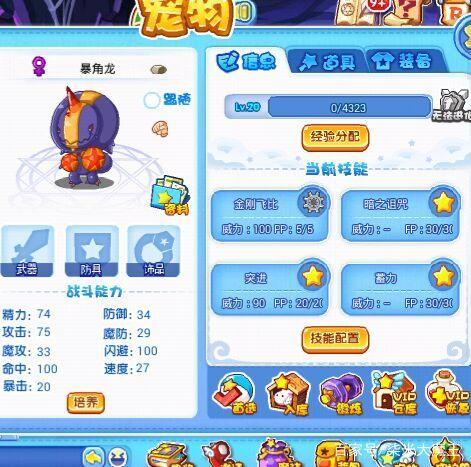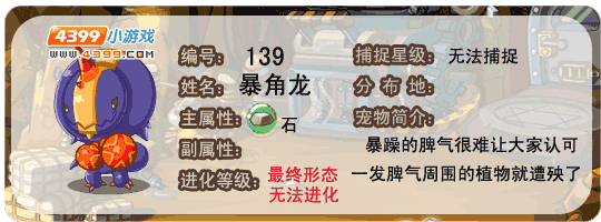 但是暴角龙的短板也十分的明显就是没有一个能够强化的技能,只有一个随机提升一种能力的技能神秘力量(最主要的是还不知道灵不灵),很多玩家也是为这只宠物感到十分的惋惜,本来可以成为一只T1级的神宠,但是奈何技能太差还速度比较慢。