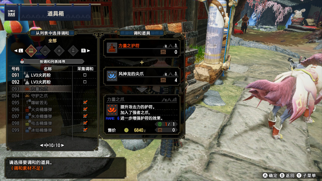 另外打完风神龙之后可以在调和界面将护符和风神龙的尖爪进行调和,获得力量之爪和守护之爪,提供9点攻击和18点防御。