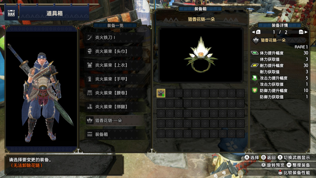 玩家可以通过自己的游玩方式选择不同的花链。花链的更换方式与装备一样,在任意一个道具箱选择变更装备就行。